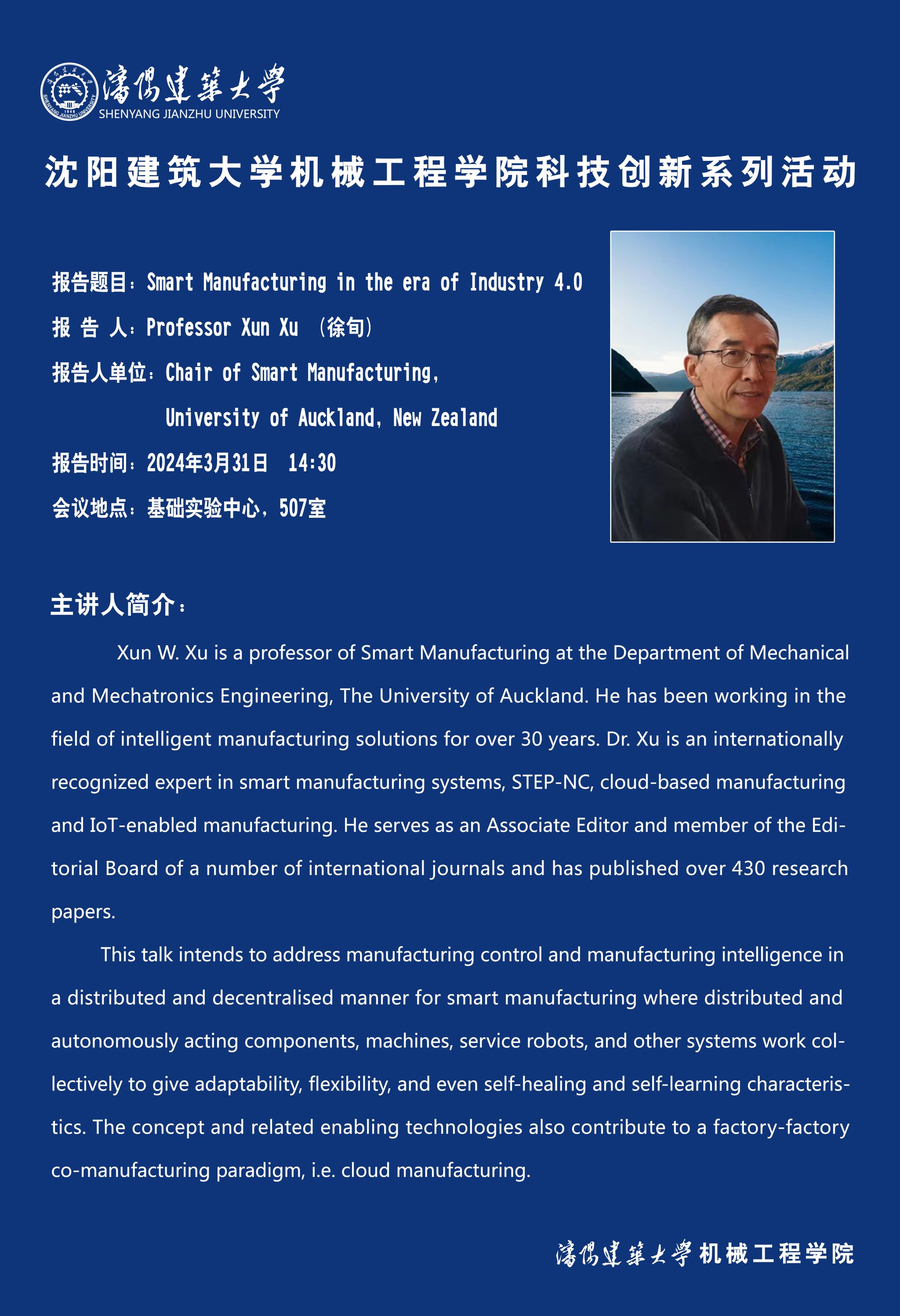 Smart Manufacturing in the era of Industry 4.0 科研讲座预告