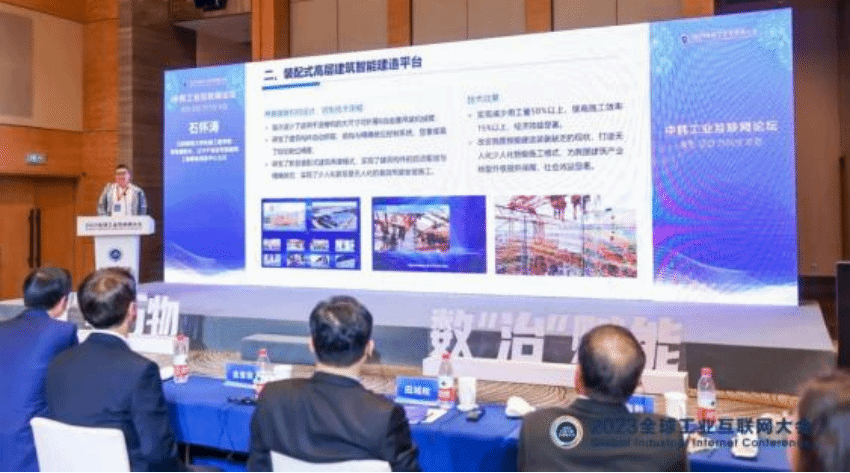 本次中韩工业互联网论坛聚焦数字化转型在工业企业中的实际应用等问题,中韩工业互联网行业专家、企业家代表150余人参加了此次研讨会,共同探讨工业互联网行业的新发展、新趋势和新模式。论坛上,石怀涛教授以“智能感知与控制驱动的智能建造装备模式探索”为题,围绕工业化建筑构件吊装安装自动控制技术与系统等内容,利用5G网络、大数据、机器人等工业互联网技术赋能传统建造装备的创新成果,如智能造楼机,通过智能感知控制、深度自学习、路径规划等互联网技术,搭配机器人,实现智能化、自动化建造。还有塔吊自动驾驶系统,可以通过GPS定位技术、5G、自动避障、防摆等智能化技术实现塔吊的无人驾驶调运。开发的无人运载建筑机器人可以在建筑施工场景的路径跟随、定点自动驾驶等,可实现建筑施工的智能化、无人化,很大程度上降低了工人作业强度和安全风险。报告获得了相关行业协会领导、国内外与会专家学者、企业代表和客户的强烈关注和一致好评。
