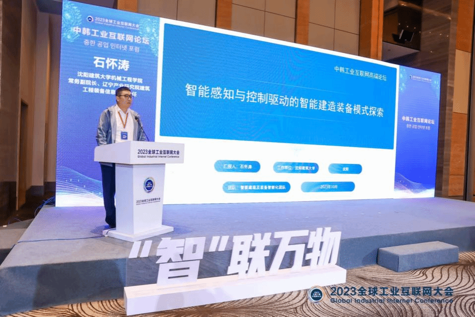 2023年10月19日,由中国国际贸易促进委员会辽宁省分会、沈阳市人民政府承办,和平区人民政府、中国工业互联网研究院协办的中韩工业互联网论坛在沈阳新世界酒店举办。我校beat365官方网站常务副院长、辽宁省产业技术研究院智能建筑装备信息技术研究所主任石怀涛教授受邀在“中韩工业互联网论坛”上作了特邀报告。