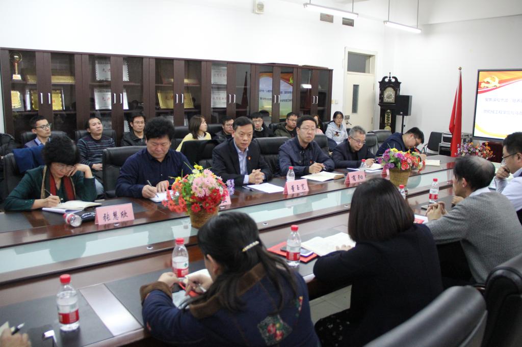为切实推动“三全育人”综合改革建设工作,着力构建“课程育人”新格局,机械学院于11月28日下午召开了“聚焦课程思政,培养时代新人”共产党员工程项目启动仪式暨机械学院与马克思主义学院共建“课程思政”启动会。学校党委书记董玉宽、机械学院和马克思主义学院党政主要负责人、机械学院全体党员教师以和马克思主义学院教师代表共50余人参加了会议。