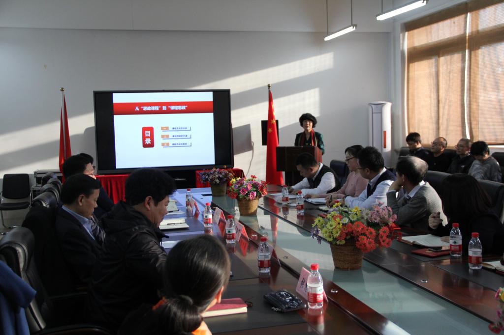马克思主义学院院长张慧欣教授以“从思政课程到课程思政”为主题,为全体参会人员做了理论辅导报告。报告围绕课程思政的由来、课程思政的内涵、课程思政的推进三个方面展开,让与会人员对“课程思政”有了更加全面深入的了解。机械学院费烨教授在随后的经验分享中,从“我的理解”、“我的做法”和“取得的成效”三个方面,重点介绍了自己在《流体力学与液压传动》专业课中开展“课程思政”实践的做法和体会,为全体党员开展“课程思政”探索提供了宝贵的经验。